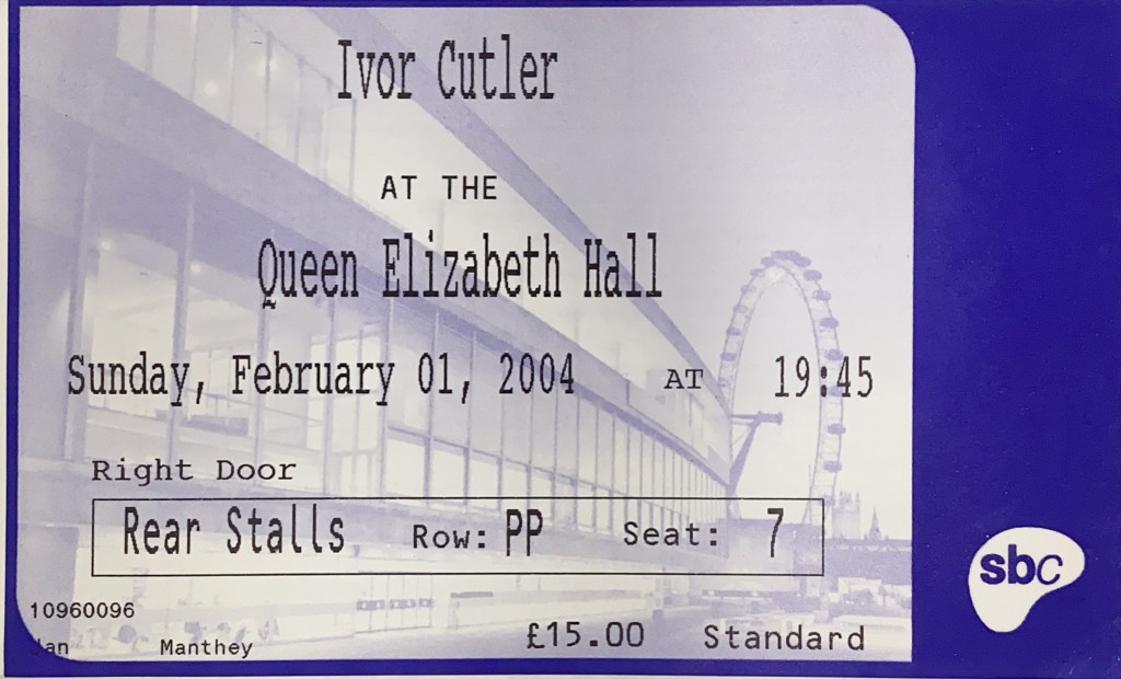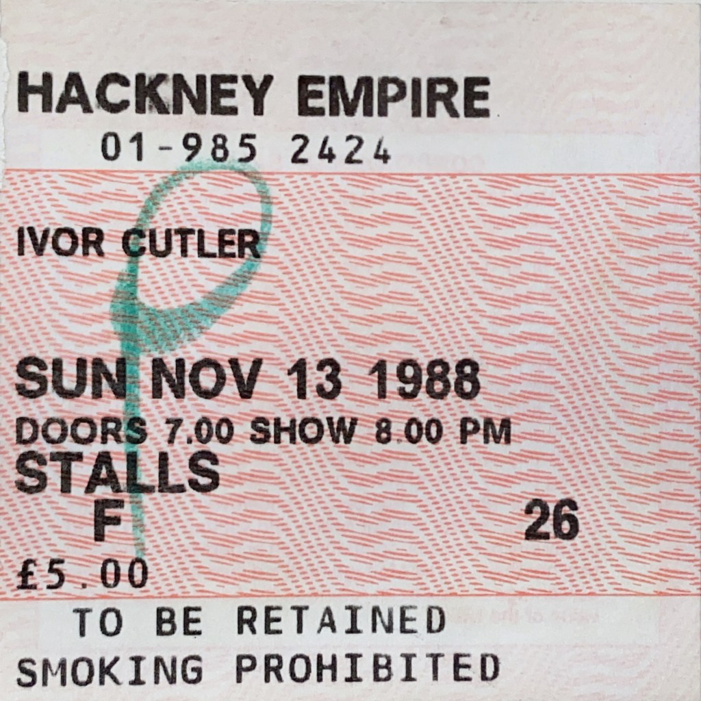 The understated and very funny poetry of Ivor Cutler was an interesting direction for a teenage boy to be interested in, but nonetheless my friend and I travelled to the far East (of London) to see him live. He was accompanied by the toneless vocal and double bass of Jean Alexander.