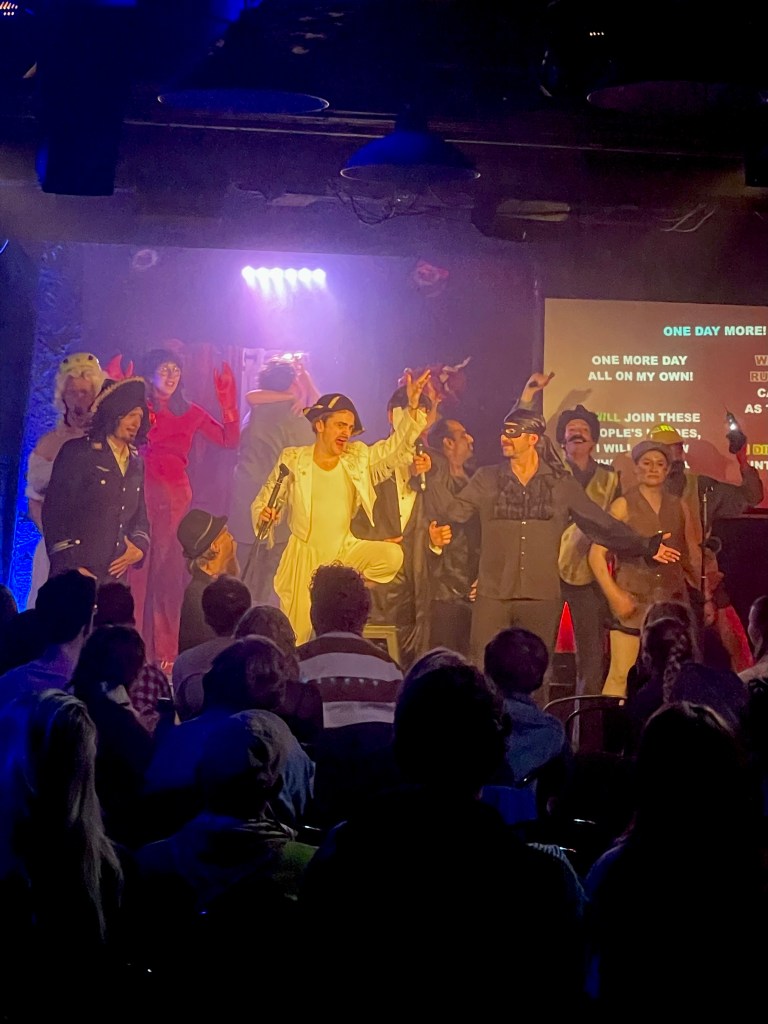 Featuring Anand Sankar (as Cameron Mackintosh), Anna Gray (as a crab), Dan Lees (as Thenardier), Jonathan Oldfield (as Marius). Josh Glanc (as the Bishop), Joz Norris (as The Phantom of the Opera), Julia Masli & Coco Duquette (as Fantine & Young Cosette), Laurie Luxe (as Cosette), Lil Wenker (as Gavroche), Lorna Rose Treen (as Eponine), Lucy Ellis & Maya Ricote (as the Revolutionaries), Luke Rollason (as Javert), Rob Duncan (as Mrs Thernadier), Tom Curzon (as Jean Valjean).
